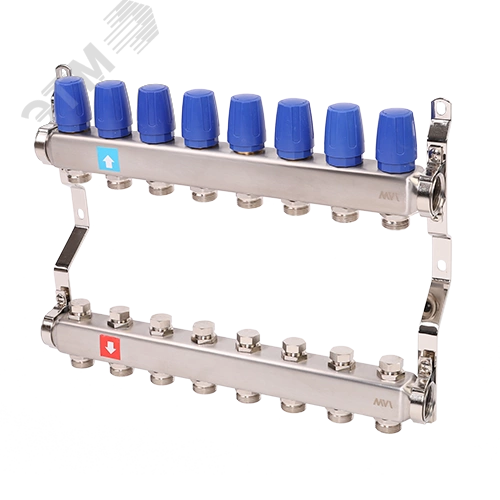 Коллекторная группа с ручными регулировочными клапанами 1' х 8 выходов 3/4' НР евроконус