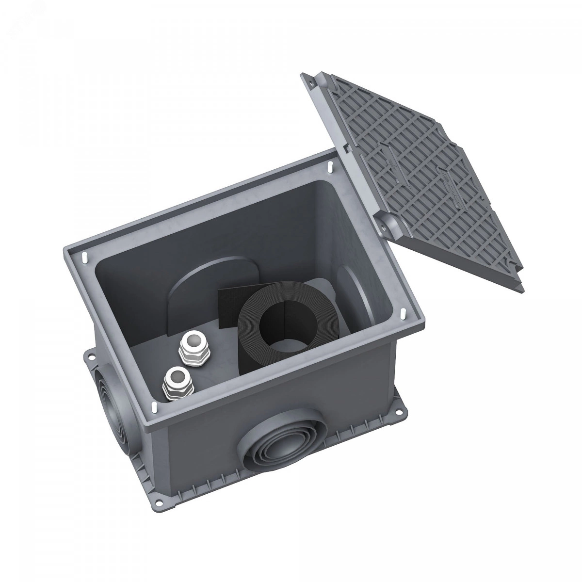 Смотровой колодец позволяет осуществлять ревизию места соединения вертикального заземлителя с полосой, а также проводить контрольные измерения сопротивления системы заземления. Устройство монтируется в грунт на одном уровне с поверхностью земли. Крышка усилена ребрами жесткости и выдерживает нагрузку до 700 кг. Материал - полипропилен.