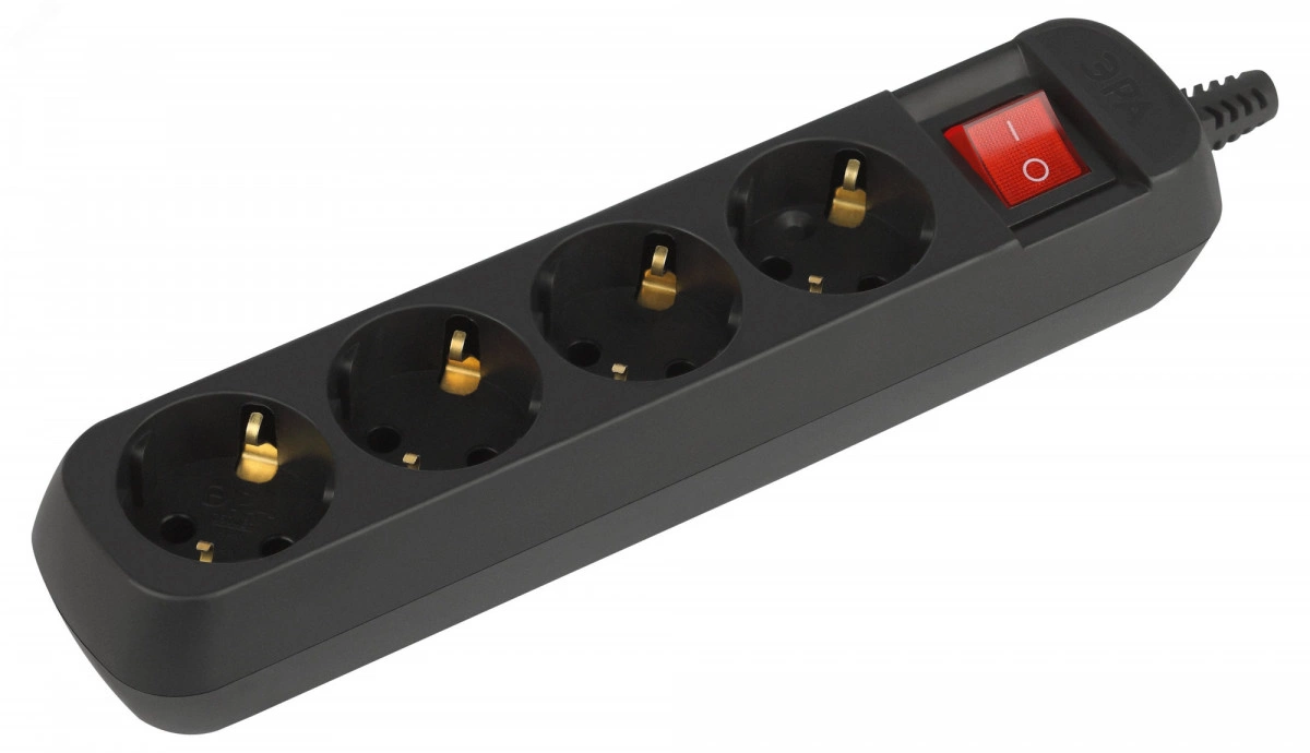 Колодка электрическая бытовая (розеточный блок) ЭРА KX-4es-B на 4 розетки европейского стандарта, с заземлением, с выключателем. Колодка изготовлена из полипропилена черного цвета. Максимальная мощность - 16 А/3500 Вт. Подходит для кабеля с сечением провода до 3х1,5мм2