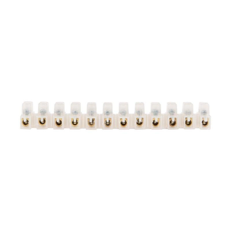 Соединение осуществляется с помощью медных контактов. Кабели и провода фиксируются винтовым зажимом. Клеммная колодка изготовлена из полупрозрачного полиэтилена.