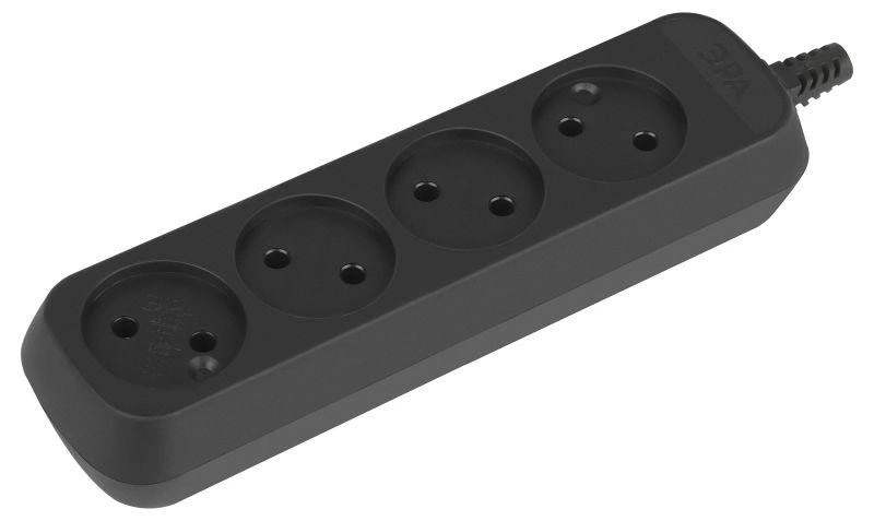 Колодка удлинителя 4-м без заземл. черн. KX-4-B Эра Б0061705
