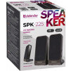 Акустическая 2.0 система SPK-225 - имеет миниатюрные размеры и легка в перемещении. Колонки не требуют сетевого источника питания. Можно просто подключить их к USB-разъему компьютера и наслаждаться звуком. Также данная модель оснащена разъемом для наушников, уровень громкости в наушниках можно менять регулятором громкости на самой колонке.