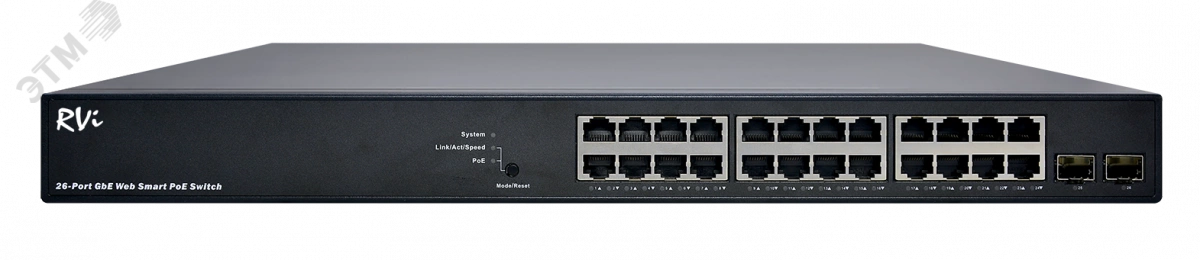 Управляемые функции уровня L2 обеспечивают более простую управляемость, надежную безопасность и качество обслуживания. Встроенная система управления устройствами (DMS). Конфигурирование и настройка работы по расписанию портов PoE. Зеркалирование для VLAN. Поддержка групп RMON 1,2,3,9 (история, статистика, сигналы тревоги и события) для улучшенного управления трафиком, мониторинга и анализа. Управление IPv4 / IPv6. Ограничение входящей/исходящей скорости потока на каждом порту. Реализован интерфейс управления PoE-портами коммутатора - просмотр состояния портов, параметров электропотребления, удаленное включение/отключение PoE на определенном порту, конфигурирование бюджета мощности.