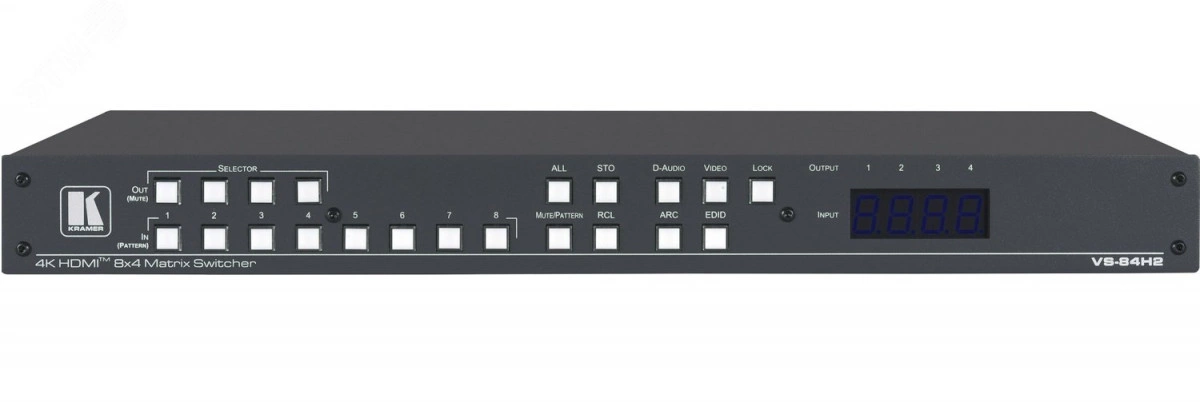 VS-84H2 - матричный коммутатор 8х4 сигналов HDMI c поддержкой разрешений до 4K60 Гц и технологии HDR, а также с функцией независимого переключения цифровых аудиосигналов. Прибор осуществляет перетактирование входного сигнала, компенсацию АЧХ кабеля и переключение сигнала HDMI от любого из восьми источников сигнала, поддерживающих HDCP-кодирование, на любой из четырех выходов или на любые комбинации выходов. VS-84H2 обладает непревзойденной гибкостью коммутации аудиосигналов, позволяя переключать любой эмбедированный цифровой аудиосигнал на любой цифровой выход в дополнение к четырем источникам обратного аудиоканала (ARC).