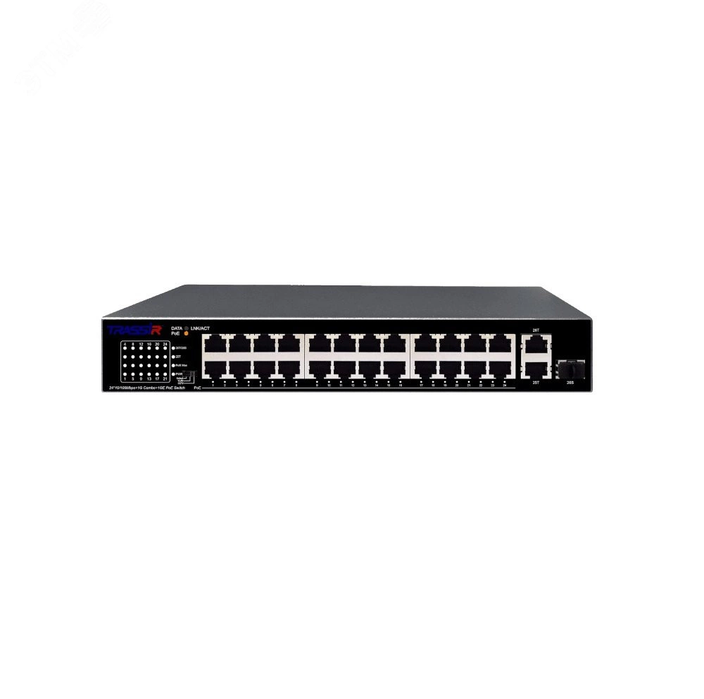 TR-NS1126-225-24PoE - это неуправляемый коммутатор на 24 порта PoE+ с поддержкой технологии питания по Ethernet (PoE). Он позволяет передавать питание и данные по одному кабелю, что удобно для установки камер видеонаблюдения в местах, где нет возможности провести кабель питания. Коммутатор имеет пропускную способность 1 Гб/с, поддерживает стандарты PoE 802.3 af/at, обеспечивает мощность на каждый порт до 30 Вт, а также защиту от перегрузки и короткого замыкания.