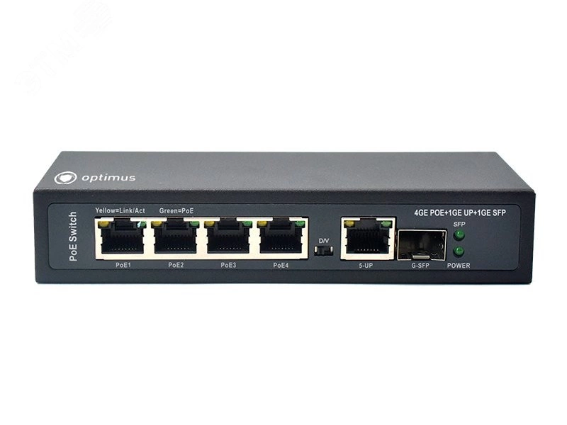 Коммутатор Optimus U1E-4G/1G/1S - неуправляемый PoE-коммутатор. Он оснащен 4 портами 10/100/1000 Мбит/с с поддержкой PoE. PoE-порты 1-4 соответствуют стандартам PoE IEEE802.3af/at. Каждый порт подает питание мощностью до 30 Вт на подключенное устройство. Это позволяет размещать оборудование в труднодоступных местах вне зависимости от расположения электрических розеток и минимизировать прокладку кабеля. Предусмотрены 2 Uplink-порта - RJ-45 и SPF со скоростью передачи данных до 1000 Мбит/с для подключения коммутатора к локальной сети, сети интернет, видеорегистратору или другому коммутатору. Поддерживает автоматическое определение MDI/MDIX на всех портах. Коммутатор распознает тип подключенного сетевого устройства и при необходимости меняет контакты передачи данных, что позволяет использовать кабели, обжатые любым способом (кроссовые и прямые). Коммутатор оснащен технологией Watchdog, которая позволяет автоматически контролировать зависания подключенных устройств.