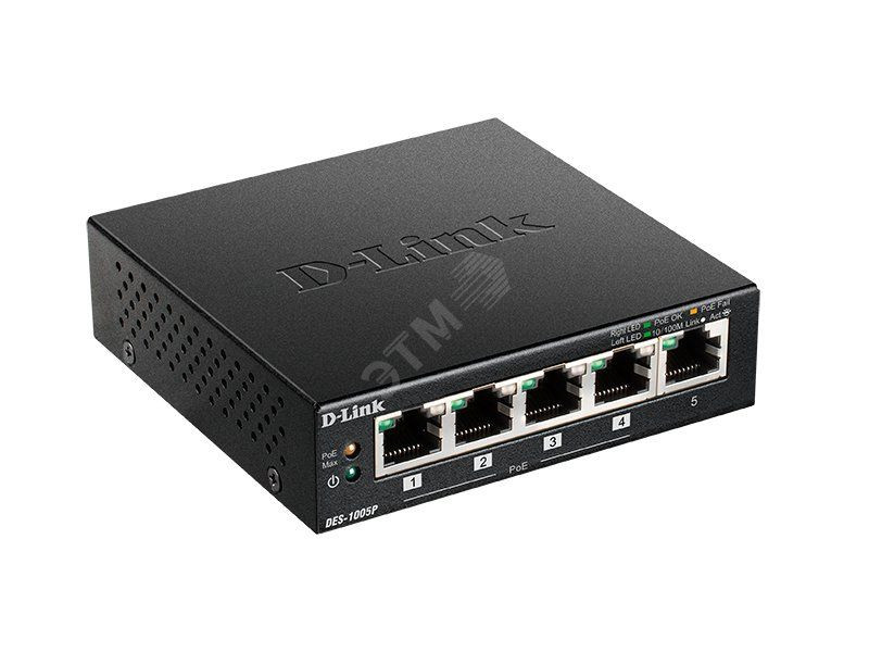Неуправляемый коммутатор с5 портами 10/100Base-TX, функцией энергосбережения и поддержкойQoS (4порта с поддержкойPoE 802.3af/802.3at (30 Вт), PoE?бюджет 60Вт)