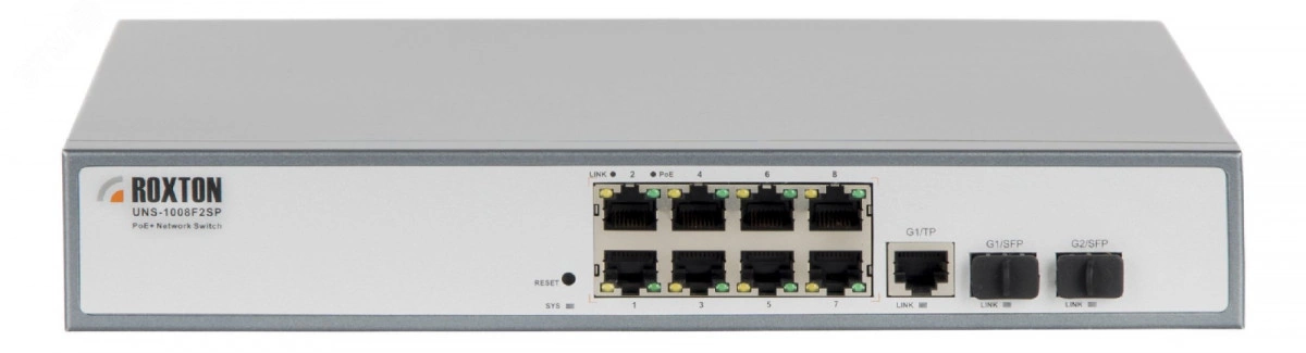 Коммутатор неуправляемый сетевой UNS-1008F2SP, порт 10/100 Мбит/с х 8, порт TF х 1, порт SFP х 2, PoE+(IEEE 802.3at-2009), 1U