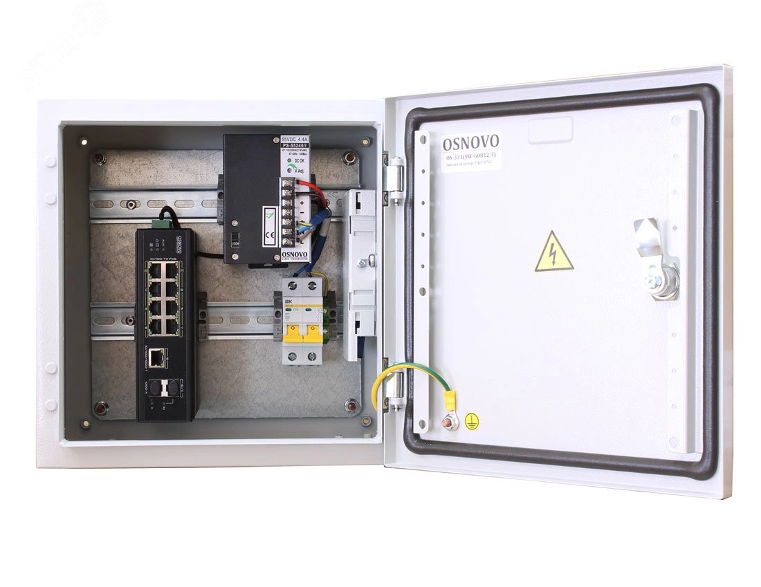 Уличный коммутатор на базе уличной станции OSNOВO OS-331. Порты 6 x FE (10/100Base-T) с PoE (до 30Вт) + 2 x FE (10/100Base-T) с PoE (до 60Вт) + 1 x GE (10/100/1000Base-T) + 2 x GE SFP (1000Base-X). Режим антизависания и режим удлинения линий связи по 8-ми PoE портам до 250м (скорость до 10Мбит/с). Металлический шкаф (ШxВxГ) 300х300х210мм, питание AC100-240В, суммарный бюджет PoE до 240Вт, оптический кросс, температурный диапазон -40 до +50 градусов, исполнение IP66.