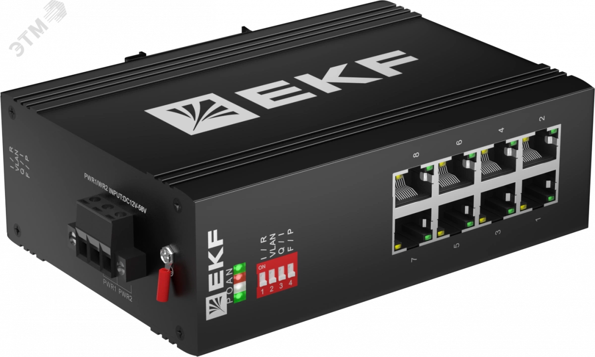 Коммутатор промышленный неуправляемый U-8GTP, 8 портов 10/100/1000Base-T(X) RJ45 c PoE, монтаж на динрейку TSX EKF