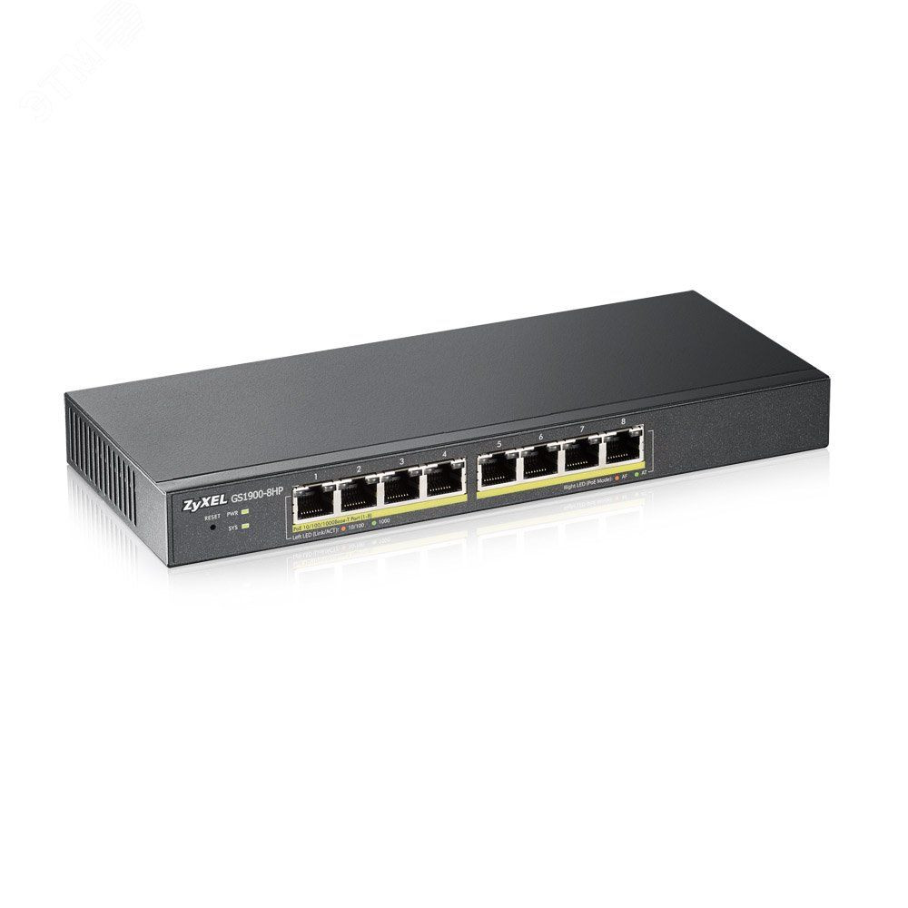 Коммутатор Zyxel GS1900-8HP поможет настроить корпоративную локальную сеть или расширить текущую систему на 8 устройств. Все 8 портов гарантируют стабильную передачу данных со скоростью 100-1000 Мбит/сек. Благодаря поддержке PoE через данный прибор вы сможете запитать IP-камеры, телефоны и прочее сетевое оборудование. Это упростит монтаж и избавит от лишних проводов. Компактный прибор Zyxel GS1900-8HP можно поставить на стол или закрепить на стене. Коммутатор дополнен набором защиты порта, от шторма и DoS, фильтрацией пакетов по MAC. Через Web-интерфейс и технологии ZON, SNMP вы можете управлять настройками, использовать функции ограничения скорости, управления потоком и зеркалирования.