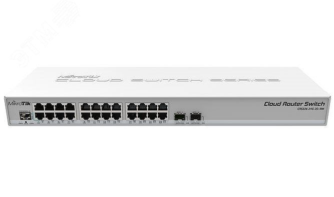 CRS326-24G-2S+RM – продвинутый управляемый L3-коммутатор, работающий под управлением операционных систем RouterOS / SwOS с функцией двойной загрузки ''Dual boot''. Имеет 24 Ethernet-порта 1 Гбит и 2 SFP+ порта, а также дополнительный процессорый блок. Является заменой модели прошлого поколения CRS125-24G-1S-RM.