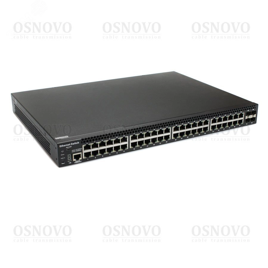 SW-48G4X-1L Управляемый L3 коммутатор Gigabit Ethernet на 48xRJ45 + 4x10G SFP+ Uplink. Порты - 48 x GE (10/100/1000Base-T) + 4 x 10G SFP+ Uplink, Консольный порт, Уровень управления L3 (Full managed), Поддержка Jumbo Frame 10K, IGMP Snooping, Монтаж в 19'' стойку, крепление в комплекте. Питание - AC90-253V(10W) c резервированием. Встроенная грозозащита 6kV. Размеры (ШхВхГ) - 440 x 44 x 320мм. Рабочая температура -10...+50 гр. С
