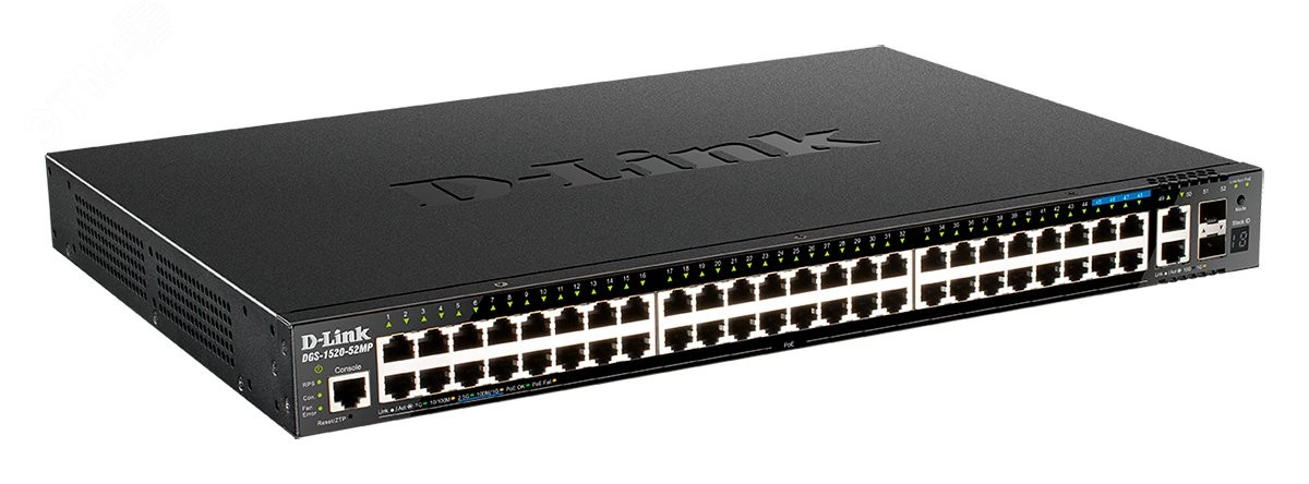 Управляемый стекируемый коммутатор DGS-1520-52MP уровня 3 предназначен для сетей предприятий малого и среднего бизнеса (SME/SMB). Устройство оснащено 44 портами 10/100/1000Base-T с поддержкой PoE, 4 портами 100/1000/2.5GBase-T с поддержкой PoE, а также 2 портами 10GBase-T и 2 портами 10GBase-X SFP+, используемыми для стекирования или uplink-соединения. Данный коммутатор с поддержкой РоЕ идеально подходит для клиентов, в сетях которых используются IP-телефоны, беспроводные точки доступа и сетевые камеры.