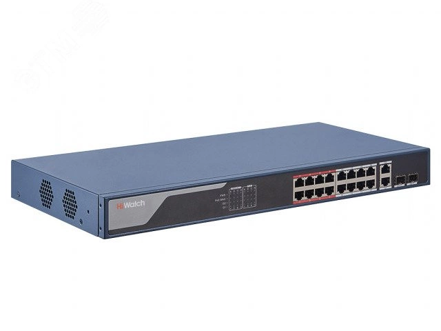 Коммутатор HiWatch SWT-1318P поддерживает подключение различных устройств сетевой периферии, нуждающихся в высокоскоростном интернет-соединении. В общей сложности эта управляемая модель предлагает 18 сетевых портов, среди которых предусмотрены гигабитные Ethernet-порты (16 шт) и 2 SFP-порта для передачи данных по оптоволокну. Благодаря наличию таблицы на 16000 МАС-адресов коммутатор запоминает однажды подключенные устройств и закрепляет их за определенным портом. Коммутатор HiWatch SWT-1318P с черным корпусом, предполагающим монтаж в стойку 19 дюймов или настольное размещение, оснащается 16 PoE-портами для питания IP-телефонов, IP-видеокамер, точек доступа и другой техники по Ethernet-кабелям. Распределяемый между PoE-устройствами бюджет мощности равняется 230 Вт. Общая потребляемая мощность коммутатора достигает 250 Вт.