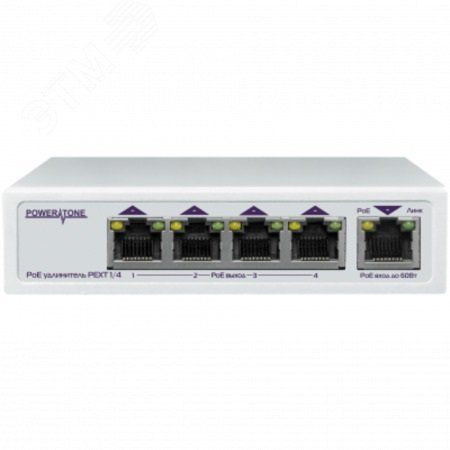 Ethernet соединения точка-точка ограничены длиной в 100м. Для того, чтобы преодолеть это ограничение в линейке устройств POWERTONE есть очень полезное устройство – PEXT 1/4, PoE удлинитель на 4 порта. С PoE-удлинителем PEXT устройства (Powerer Devices, PD) такие как PoE IP камеры, PoE VoIP телефоны, PoE Wi-Fi точки могут быть подключены на расстояниях 200, 300 и 400 метров, с многократным применением удлинителя. PoE удлинитель PEXT 1/4 не требует внешнего питания, работает от передаваемого PoE, потребляя всего 3 Вт, что является наименьшим потреблением мощности, среди всех устройств данного класса.