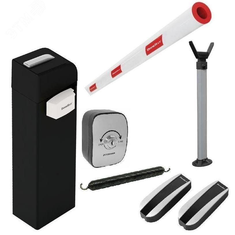 Комплект шлагбаума BR-PRO4000RKIT, в составе стойка Barrier-PRO со встроенной сигнальной лампой и приемником, круглая стрела BOOM-4R, опора стрелы V-HOLDER, ключ-кнопка KEYSWITCH-N, фотоэлементы PHOTOCELL-N