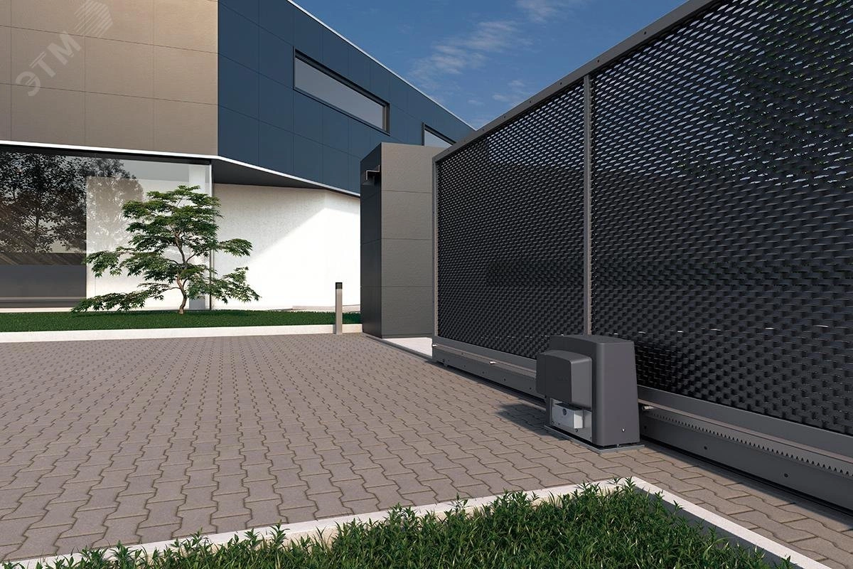 Комплект автоматики для откатных ворот на основе привода BKS18AGS (встроенный блок управления ZBKN, радиоуправление, фотоэлементы). Встроенный блок управления с дисплеем и кнопками управления. Встроенная система разблокировки. Идеальное решение для автоматизации откатных ворот на крупных промышленных предприятиях.