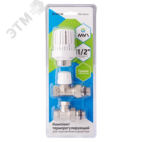 Комплект для подключения радиатора 3 в 1 терморегулирующий прямой 1/2' (TR.623.04)