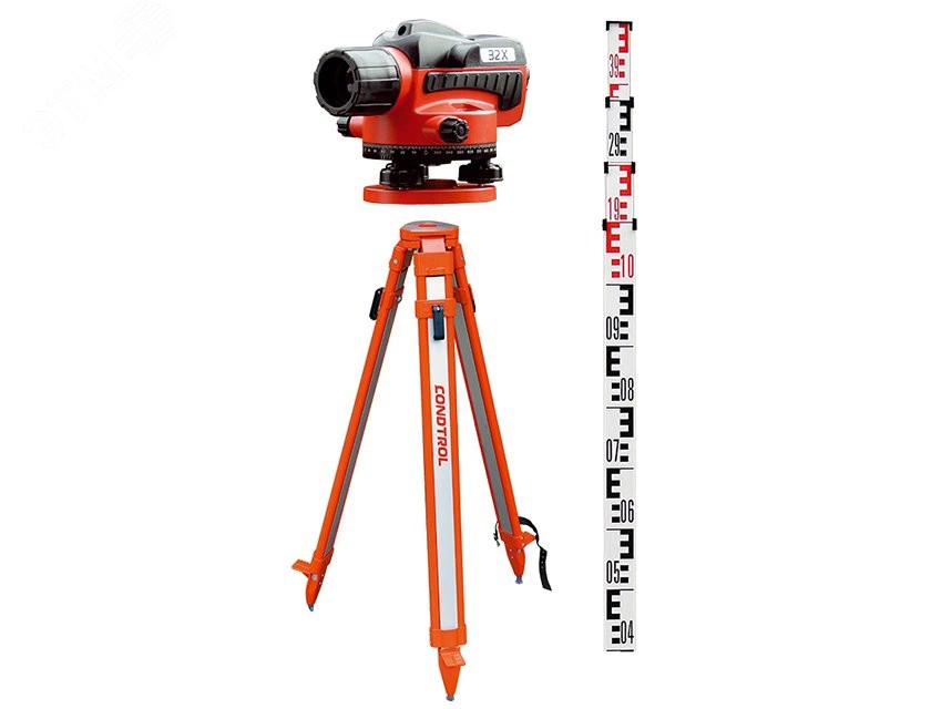 32X оптический нивелир снабжён компенсатором с магнитной системой демпфирования, работающем в диапазоне ±15'. Это позволяет быстро и корректно производить измерения с высокой точностью. Среднеквадратичная ошибка на 1 км двойного хода составляет 1,5 мм. Прибор обладает 32-кратным увеличением зрительной трубы с просветленной оптикой, что значительно улучшает видимость и облегчает наведение на удаленные объекты. Нивелир имеет горизонтальный лимб с ценой деления 1 градус и винтом бесконечного наведения, а для удобства поиска цели сверху на зрительной трубе расположен оптический визир-целеуказатель.