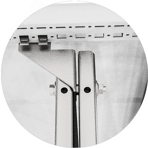 Комплект крепления для монтажных панелей ''задняя стенка к задней стенке'' RS52 предназначен для соединения двух монтажных панелей одинакового габарита. Крепится к горизонтальным балкам основания и крыши.