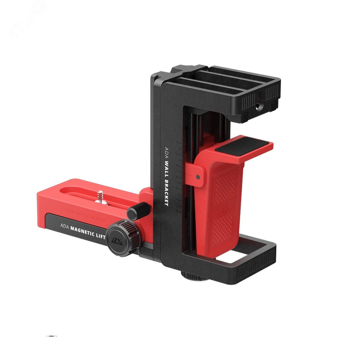 ADA BASE (MAGNETIC LIFT + WALL BRACKET) универсальное крепление с микролифтом для размещения лазерного уровня на любых поверхностях и высоте. Состоит из двух частей - ADA MAGNETIC LIFT (магнитное крепление с микролифтом для лазерных уровней до 1 кг) и ADA WALL BRACKET (быстросъемная струбцина с шириной зажима до 55 мм для крепления лазерных уровней до 2 кг установленных на MAGNETIC LIFT). Для крепления используются сильные неодимовые магниты. Специальный желоб для установки на трубах. Для предотвращения скольжения по поверхности используются резиновые вставки. Диапазон установки горизонтальной площадки от 0 до 11 см. Регулировка производится с помощью двухсторонних ручек. Выбранное положение фиксируется винтовым стопором.Для установки на штативе в нижней части крепления две резьбы 1/4 и 5/8 дюйма и дополнительно два крепежных винта для приборов в комплекте 1/4 и 5/8 дюйма.