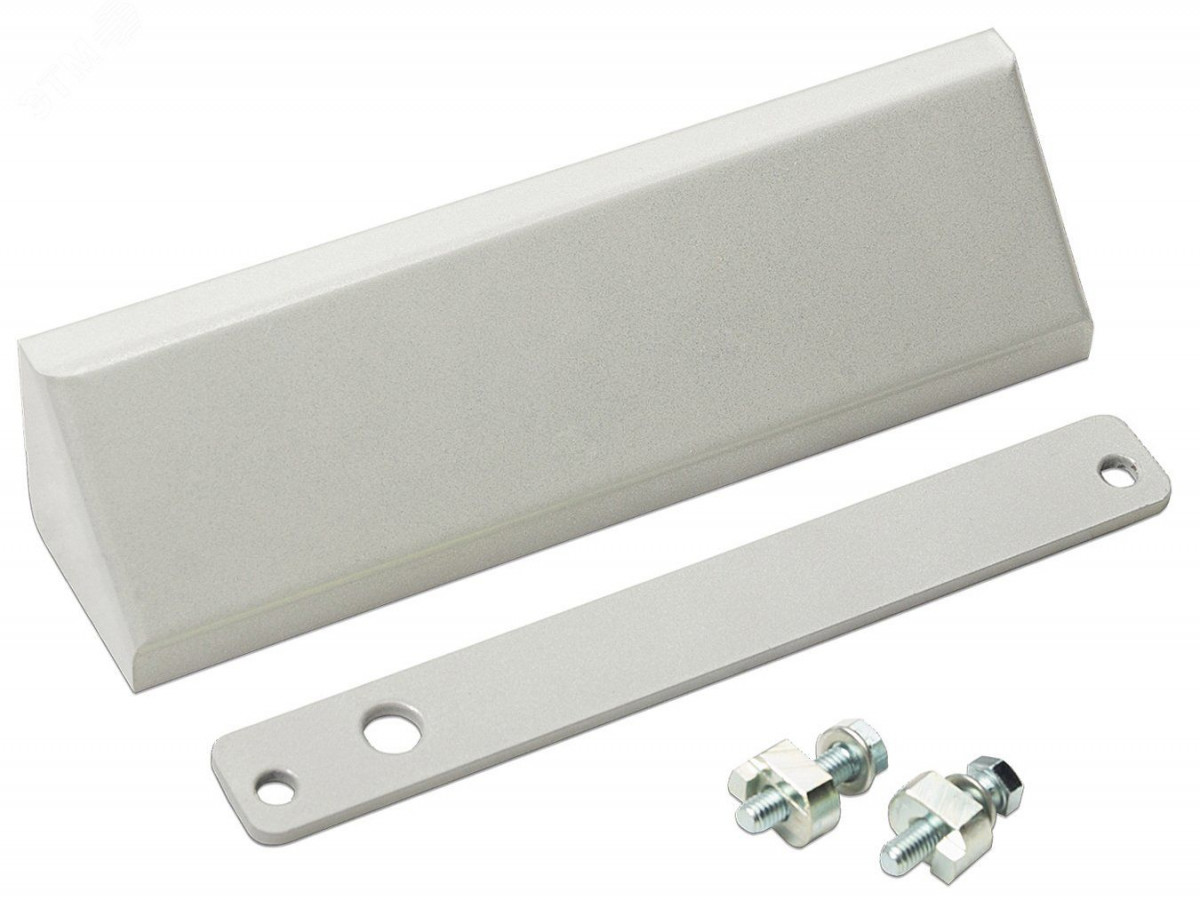 Монтажный комплект для электромагнитного замка AL-150 PRemium на L-уголке с декоративным кожухом в цвет замка, с элементами крепления и планкой М150. Выполнен в белом цвете.