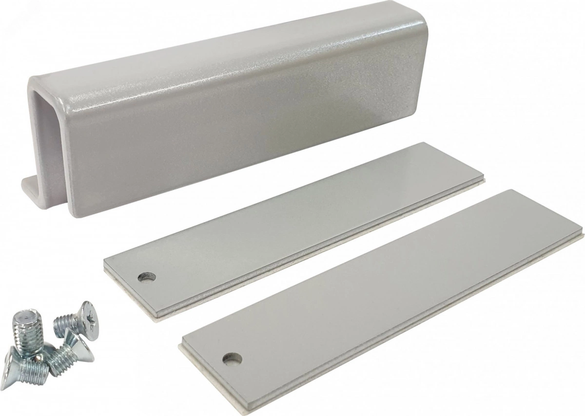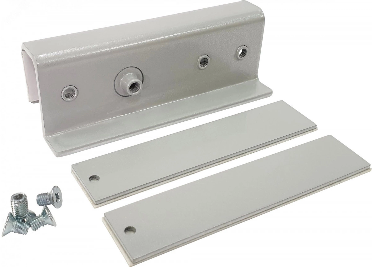 Комплект МК AL-150PR-U1-Glass предназначен для крепления якоря замка AL-150PRemium на стеклянные распашные двери, открывающиеся в одну сторону. Цвет исполнения серый.