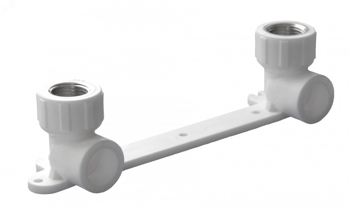 Угольники двойные (настенные комплекты) используется для установки смесителей в системах горячего и холодного водоснабжения с возможностью крепления к вертикальной поверхности. Выпускаются диаметром 20 и 25 мм под наружное или внутреннее соединение со смесителем. закладные детали - латунь.