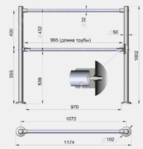 -Горизонтальная перемычка (диаметр 32мм) до L-1000мм ХРОМ