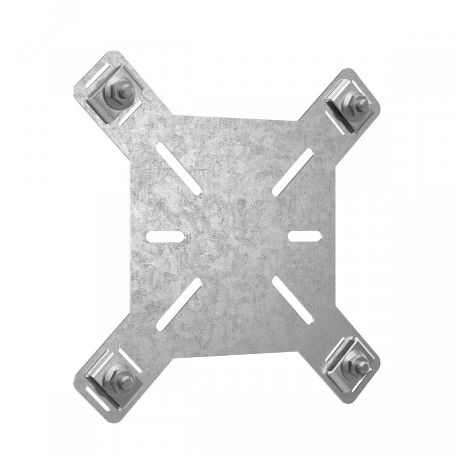 Комплект для крепления на троссах извещателя пожарного. Межцентровое расстояние между точками крепления 70 мм. Габаритные размеры 170 х170 мм. Защищена от коррозии цинковым покрытием, нанесенным методом горячего цинкования.