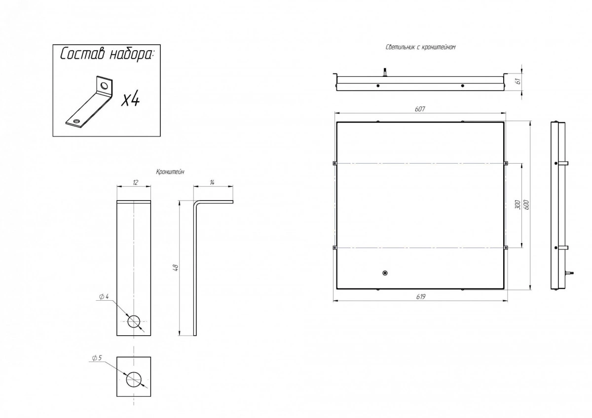 Крепления позволяют монтировать офисные светильники со степенью защиты IP65 накладным способом без создания отверстий в корпусе. Крепления устанавливаются под прижимкую рамку рассеивателя и закрепляются на корпусе светильника с помощью винтов. Комплект поставки - крепление для накладного монтажа (4 шт).