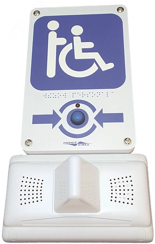 Предназначен для вызова персонала чтобы обслужить инвалида на коляске прямо на улице или помочь ему подняться в магазин по лестнице или по крутому ненормативному пандусу. Комплект состоит из радиокнопки вызова MP-413W14 (далее радиокнопка), изготовленной в виде таблички с тактильной пиктограммой 'Инвалид' и надписью шрифтом Брайля, 3-х канального радиоприемника MP-821W4 и блока питания 12В с адаптером-блоком защиты GC-0012U3.