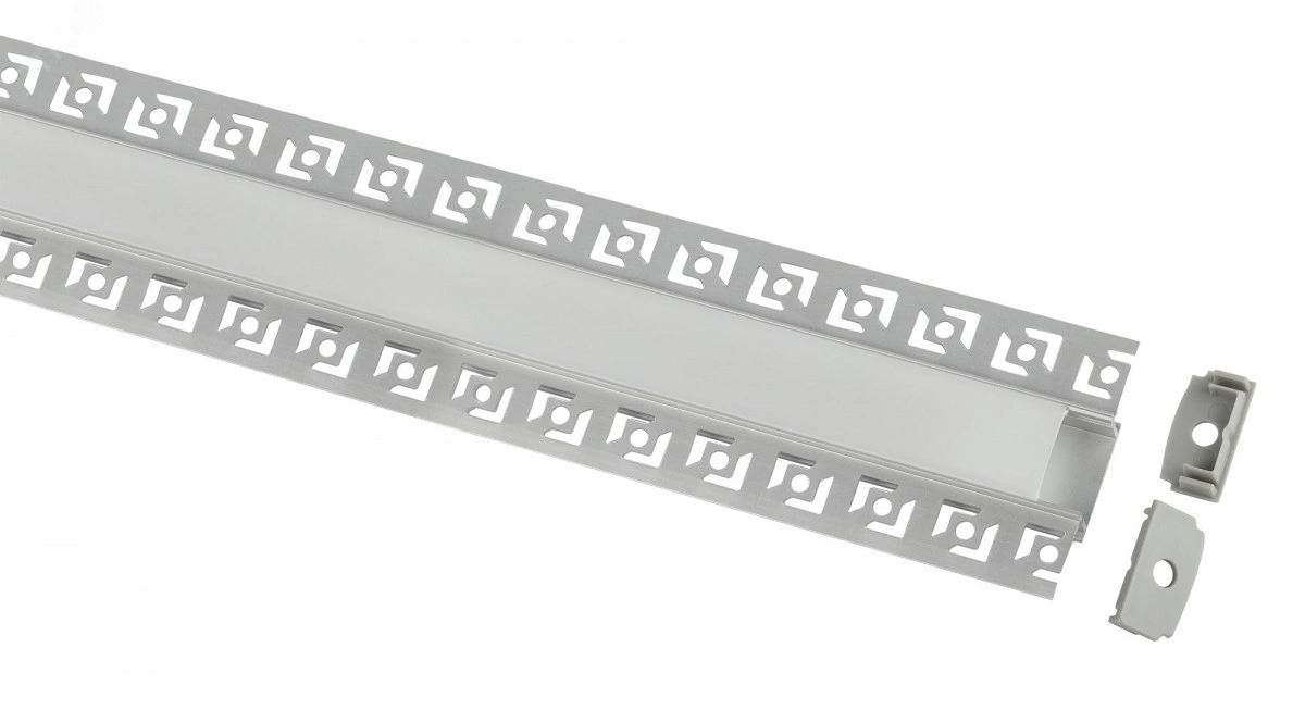 Комплект алюминиевого профиля под штукатурку предназначен для установки светодиодных лент с шириной подложки до 20мм. За счёт отведения тепла увеличивает срок службы светодиодной ленты. Анодированное покрытие обеспечивает устойчивость к воздействиям окружающей среды и легко окрашивается. Эстетично смотрится в интерьере, обеспечивает механическую защиту. В комплекте с алюминиевым профилем под штукатурку 6114 61х14 мм, 2,5м, белый матовый экран из поликарбоната и 2 заглушки.