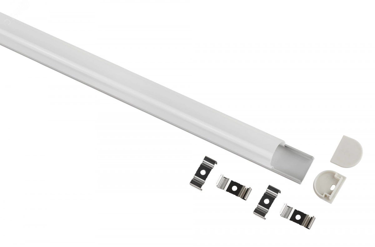 Комплект накладного алюминиевого профиля предназначен для установки светодиодных лент с шириной подложки до 22мм. За счёт отведения тепла увеличивает срок службы светодиодной ленты. Анодированное покрытие обеспечивает устойчивость к воздействиям окружающей среды и легко окрашивается. Эстетично смотрится в интерьере, обеспечивает механическую защиту. В комплекте с накладным алюминиевым профилем 2420 24х20 мм, 2м, белый матовый экран из поликарбоната 4 крепления и 2 заглушки.