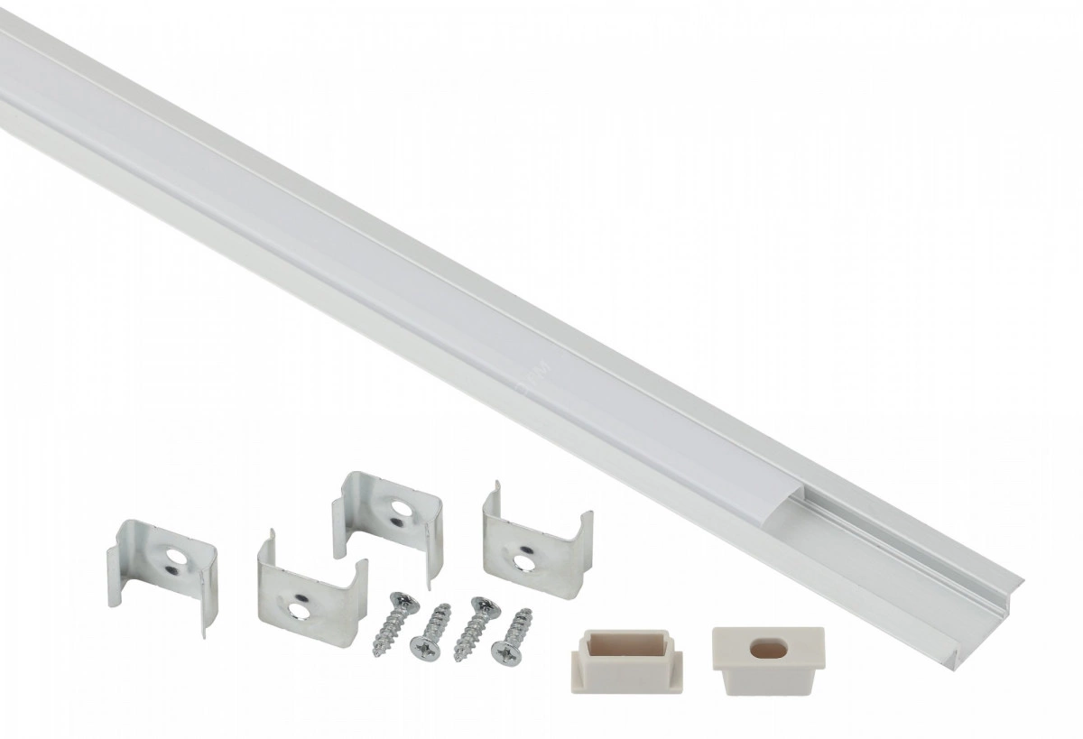 Комплект предназначен для установки светодиодных лент. За счёт отведения тепла работающих светодиодов увеличивает срок службы ленты. Анодированное покрытие обеспечивает устойчивость к воздействиям окружающей среды, обеспечивает гладкость и легко окрашивается. Эстетично смотрится в интерьере, обеспечивает механическую защиту. В комплекте накладной анодированный профиль с фланцем CAB251 21х6мм, , 2м. защитный экран 2 м, 4 крепления и 2 заглушки.