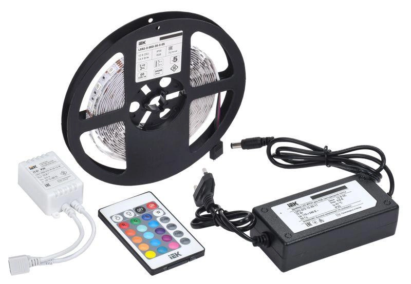 Полное описание: Комплект светодиодной подсветки "Сделай сам" DIY (лента LED 5м LSR-5050RGB60-14.4-IP20-12В + драйвер + контроллер) IEK 2LSR2-3-060-20-1-05-S2