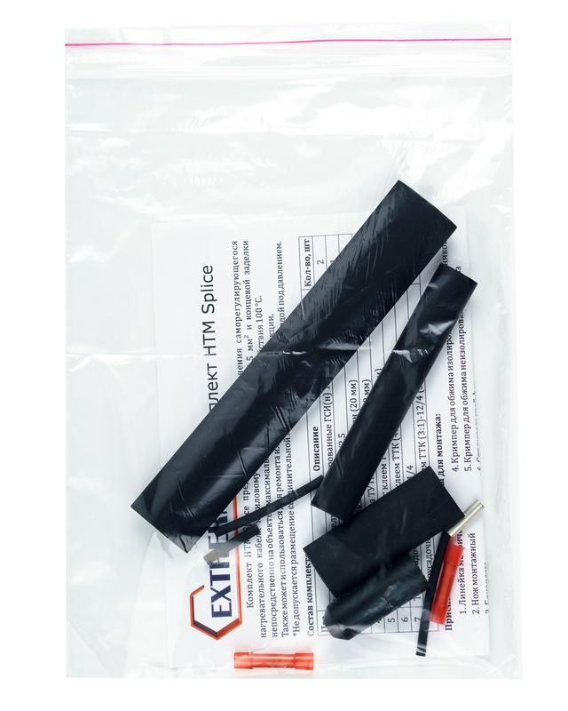 Полное описание: Комплект термоусадочный для ремонта/соединения и концев. заделки саморег. кабелей HXTM Extherm HTM splice