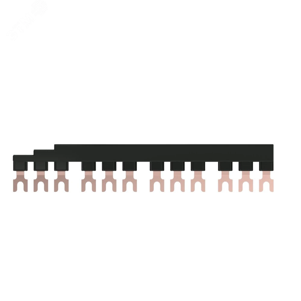 Комплект трехполюсных шин для автоматических выключателей серии SystemePact GM2, на номинальный ток до 63А, исполнение – 4 модуля по 45 мм, монтаж – сверху выключателей. Шины предназначены для правильного и надежного подключения к источнику питания нескольких автоматических выключателей, установленных на одну DIN-рейку.