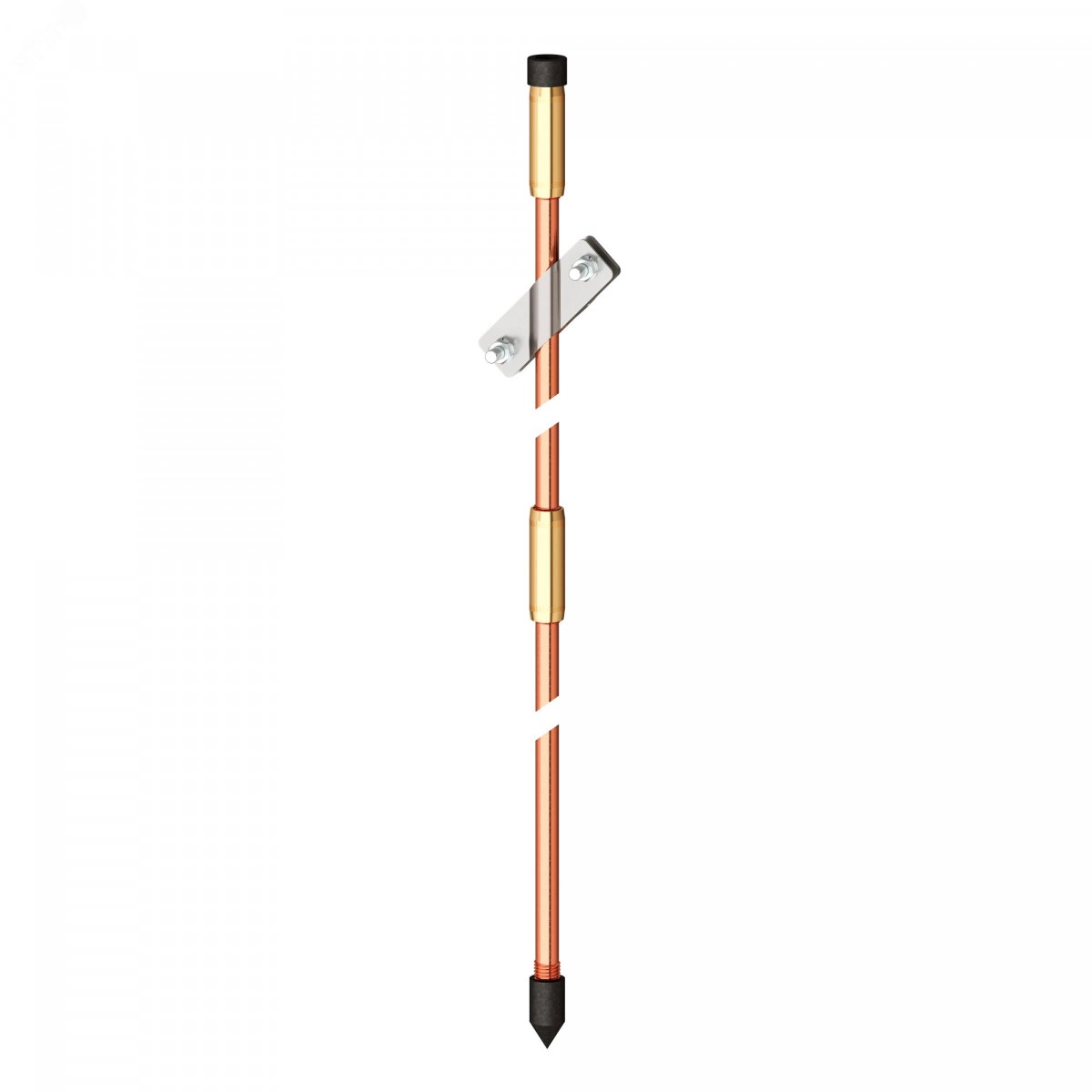 Назначение омедненного вертикального заземлителя - организация заземления токоотводов молниезащиты или электрического оборудования. Общая длина - 3000 мм, материал - омедненная сталь, диаметр - 14, 2 мм. Секции (1500 мм) соединяются с помощью вкручиваемых соединительных муфт. Комплект включает - вертикальный заземлитель, 1500 мм – 2 шт, соединитель проводника – 1 шт, соединительная муфта– 2 шт, наконечник – 1 шт, забивной винт– 1 шт.