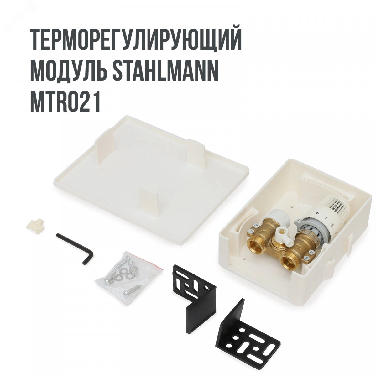 Комплекты предназначены для обустройства одного контура водяного теплого пола без использования распределительного коллектора и насосно-смесительного узла. Комплекты подключаются к основному контуру отопления дома без использования распределительного коллектора и насосно-смесительного узла. Регулировка температуры петли водяного пола производится с помощью модуля, который имеет встроенный регулятор температуры теплоносителя. Модуль устанавливается таким образом, чтобы теплоноситель сначала проходил через петлю водяного теплого пола, а затем уже попадал на встроенный регулятор температуры модуля. Желаемая температура обратного потока устанавливается регулировочным маховиком регулятора. При достижении желаемой температуры теплоносителя регулятор перекрывает поток теплоносителя в петле, после того как температура теплоносителя снижается, отдавая тепло в стяжку, регулятор снова открывается.