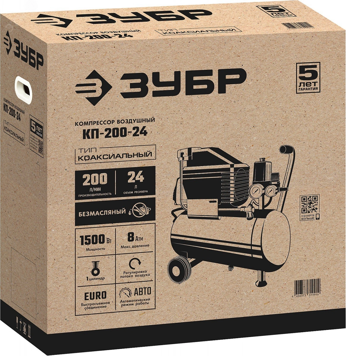Компрессор воздушный безмасляный, 200 л/мин, 24 л, 1500 Вт