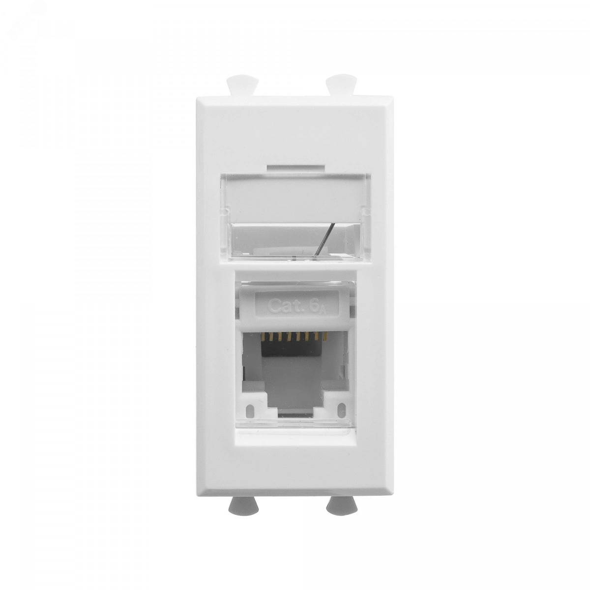 Компьютерная розетка RJ-45 модульная. Категория- 6А. Предназначена для монтажа в системы 'In-liner Front' и 'In-liner Aero' при помощи рамок-суппортов и каркасов 'Avanti' (код 4400912 и т.д.). Используется для подключения сетевого кабеля к рабочему месту. Характеристики- 8P8C. С пылезащитной шторкой, с маркировочной табличкой. В комплекте разъем Keystone. Заделка не требует инструмента. Фиксация в подрозеточные коробки глубиной не менее 45 мм при помощи каркаса с лапками (код 4400802) и саморезов. 1 модуль. Цвет- 'Белое облако'.