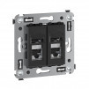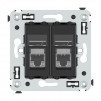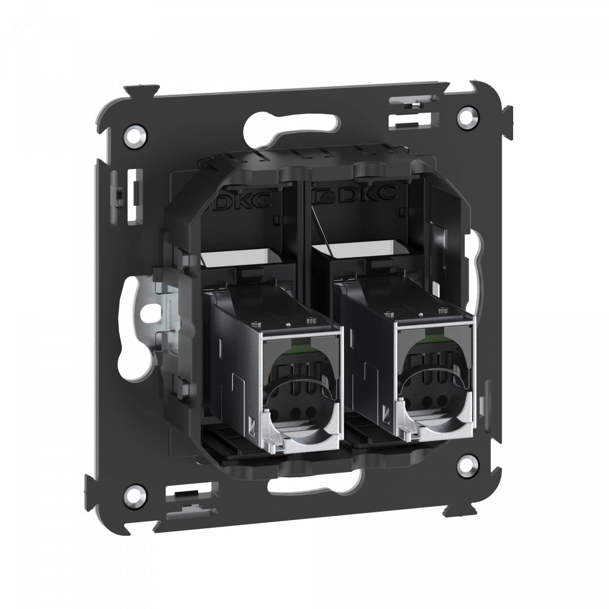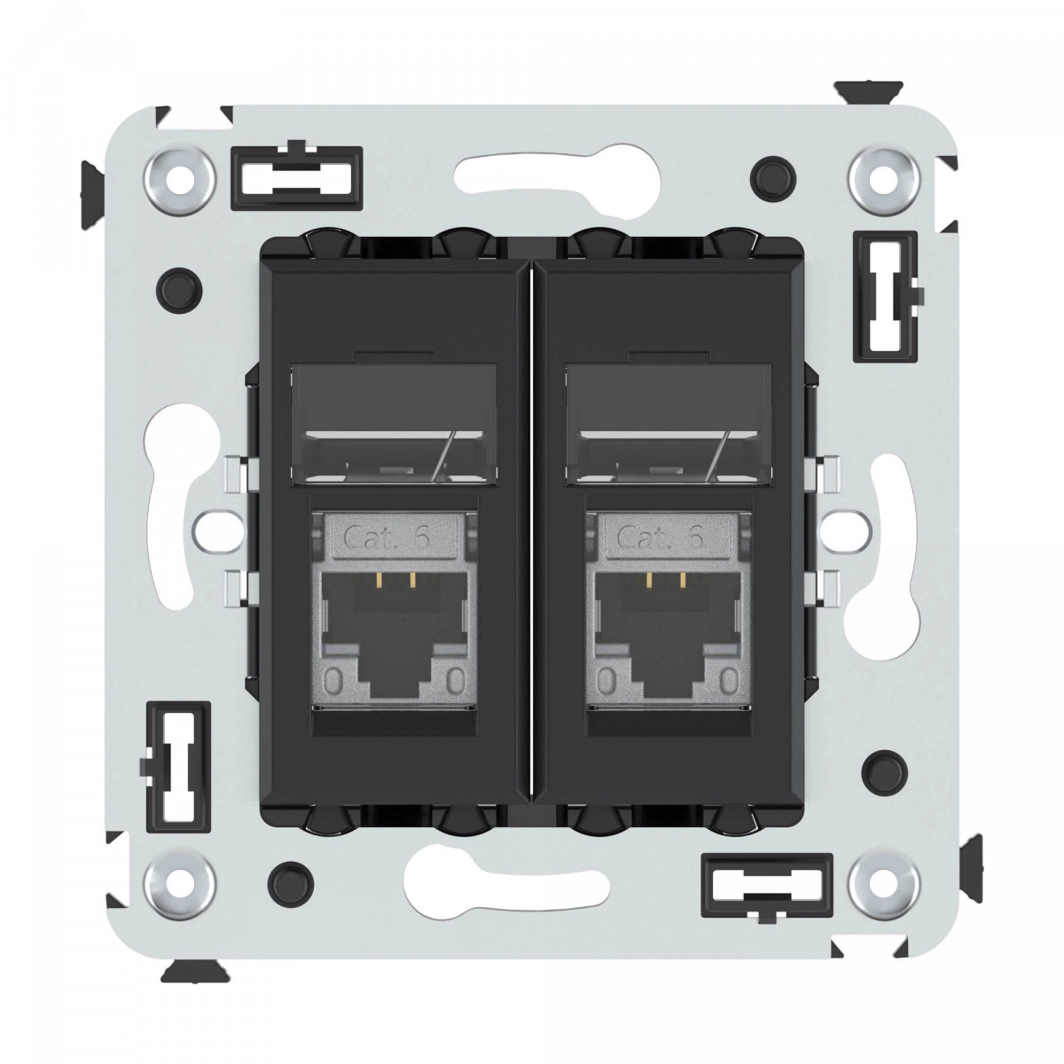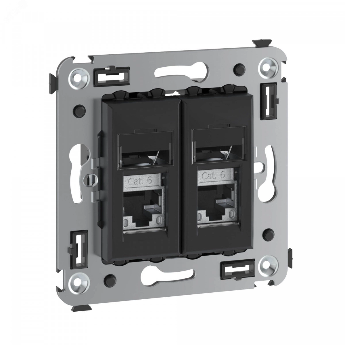 Компьютерная розетка RJ-45 в стену, двойная. Категория- 6, экранированная. Предназначена для монтажа в подрозеточные коробки глубиной не менее 45 мм (код 59301). Используется для подключения сетевого кабеля к рабочему месту. Характеристики- 8P8C, с пылезащитной шторкой, с маркировочной табличкой, заделка без инструмента. 2 модуля. Цвет- 'Черный матовый'.