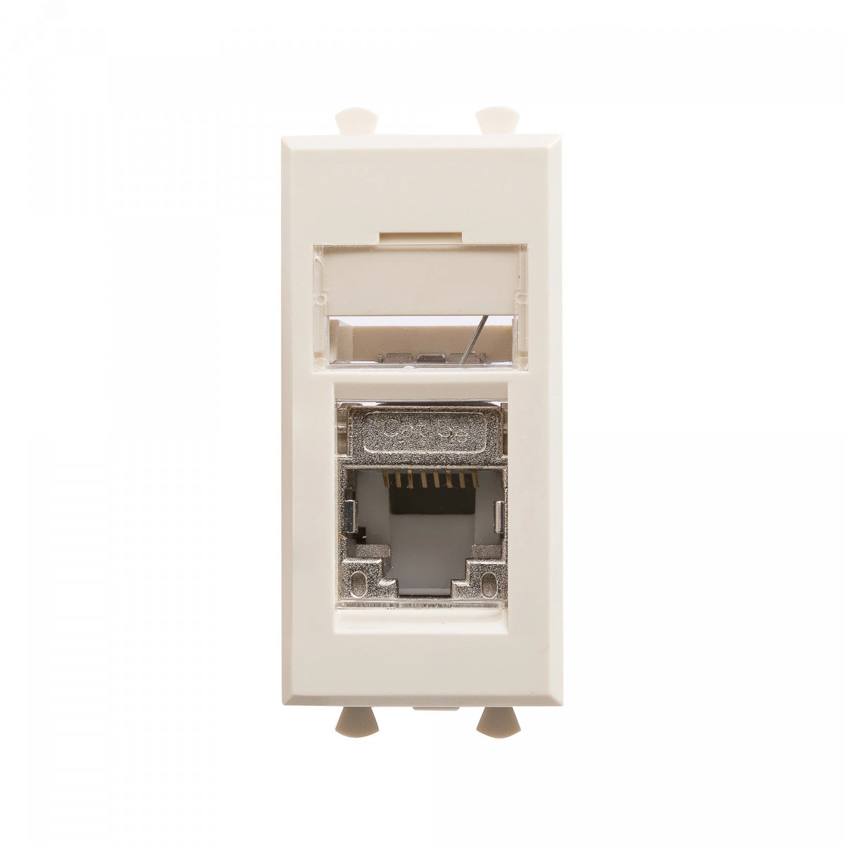 Компьютерная розетка RJ-45 модульная. Категория- 5е, экранированная. Предназначена для монтажа в системы 'In-liner Front' и 'In-liner Aero' при помощи рамок-суппортов и каркасов 'Avanti' (код 4400912 и т.д.). Используется для подключения сетевого кабеля к рабочему месту. Характеристики- 8P8C. С пылезащитной шторкой, с маркировочной табличкой. В комплекте разъем Keystone. Заделка производится без инструмента. Фиксация в подрозеточные коробки глубиной не менее 45 мм при помощи каркаса с лапками (код 4400802) и саморезов. 1 модуль. Цвет- 'Ванильная дымка'.