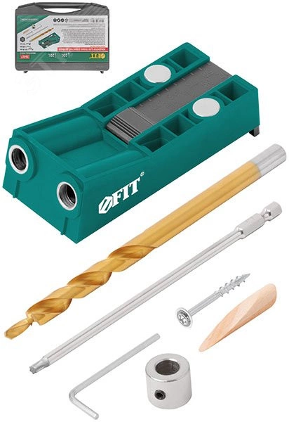 Кондуктор для глухих отверстий с ограничителем глубины двойной, пластиковый кейс
