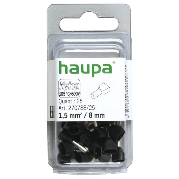 Конечная гильза для двух проводов цвет чёрный 1,5 / 8 (упак. 25 шт.)