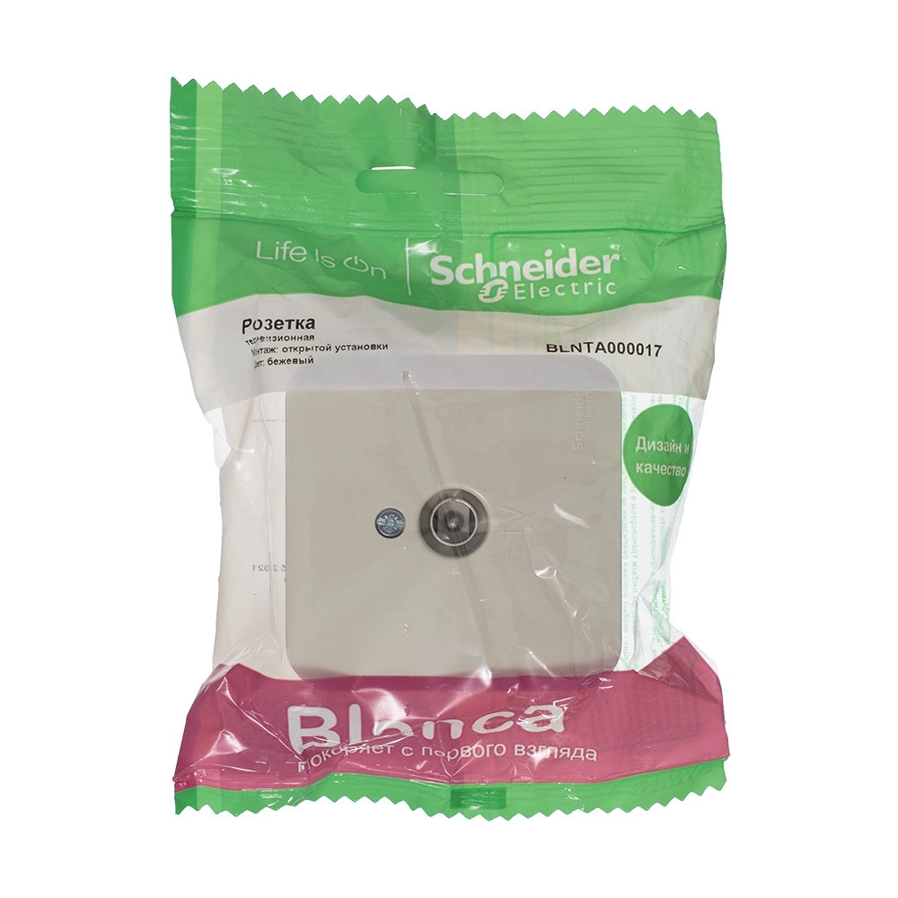 Розетка Schneider Electric BLANCA (открытой установки, цвет бежевый) телевизионная, с изолирующей пластиной предназначена для подключения телевизионного кабеля к сети. Корпус изделия выполнен из ABS-пластика.