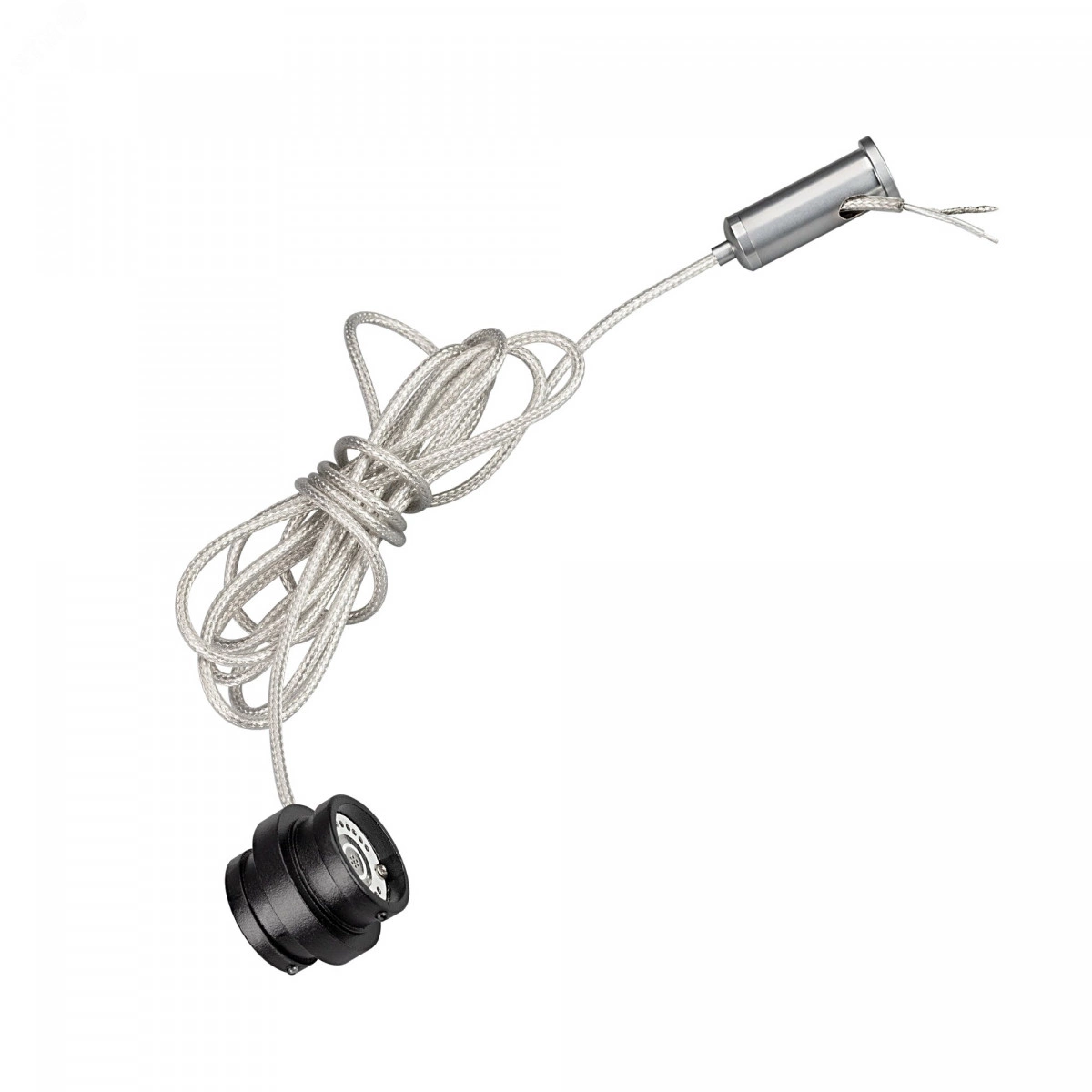 Прямой коннектор черного цвета MAG-FLEX-CON-POWER-MINI-KIT (BK) с системой подвеса и кабелем питания. Напряжение 48V. Цанговый зажим в комплекте.