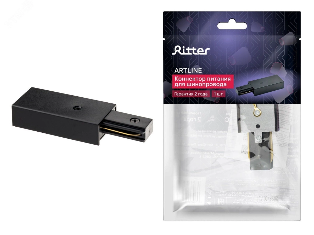 Коннектор питания для шинопровода, прямой, ARTLINE, пластик/медь, черный, 59756 2, Ritter